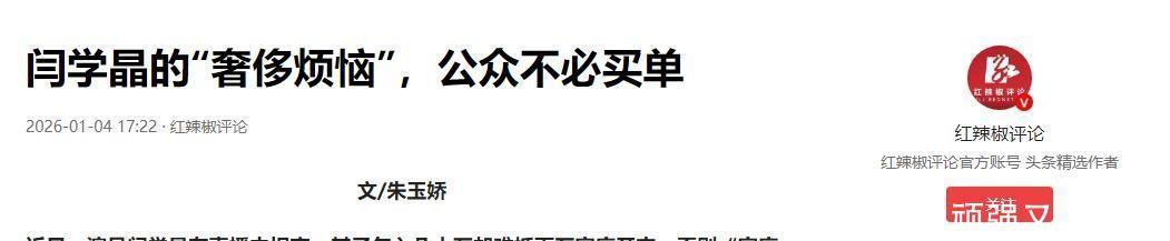 闫学晶的事,大家应该都听说了吧,就是那个演员,她说她儿子在北京压力大,这事闹得挺大的,就在2025年末发生的。她说她儿子在北京挣钱不多,生活不容易,可网友不买账啊,都觉得她儿子生活条件肯定比普通人好多了,她作为老演员,挣的肯定也不少,怎么好意思说这种话呢,是不是有点脱离群众了,反正当时网上吵翻天了,各种评论都有。